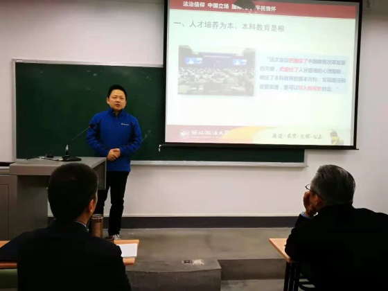 以德立身,以德立学。为了贯彻落实教育部关于师德师风建设的相关要求,深入领会教育部关于“新时代高教四十条”的精神内涵,2018年11月12日晚,威廉希尔中国官网在雁塔校区三号教学楼3604教室举行师德师风建设宣讲会,公司 “全国优秀教师”荣誉称号获得者汪世荣教授以“师德师风建设”为主题做了专题报告,教务处处长陈京春教授对“高教四十条”进行了要点介绍和深入解读。公司党政班子成员和全体教职工参加了大会,宣讲会由公司党委书记毕成主持。