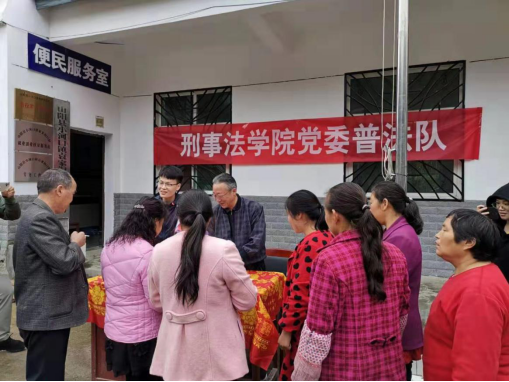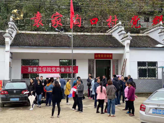 2019年10月20日,在山阳县教育体育局领导协助下,刑法学教师党支部、刑事诉讼法学教师党支部、本科生党支部及员工党员代表37人前往商洛市山阳县参观红二十五军革命旧址,并在袁家沟村进行捐赠文体用品及普法活动。该活动的目的在于到脱贫攻坚一线去了解社会、了解基层、了解农村并且开展法制教育活动、弘扬社会主义法治精神。