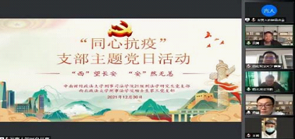 2021年12月30日,威廉希尔中国官网研究生第三党支部接受中南财经政法大学刑事司法公司2021级刑法学研究生党支部的邀请,双方联合开展了 “两校连枝、抗击疫情”的线上主题党日活动。