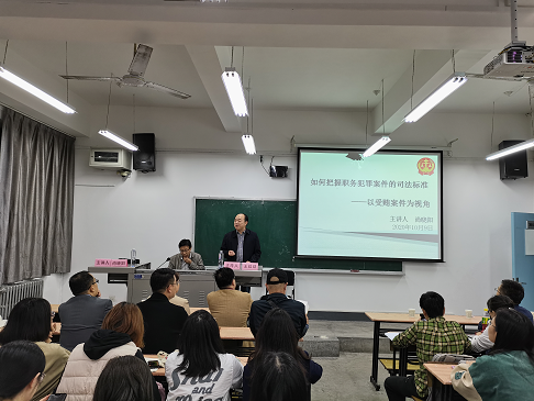 尚晓阳法官在讲座前言中引出了本次讲座的主题——如何把握职务犯罪案件的司法标准(以受贿案件为视角),同时介绍了新时期反腐败斗争形势下办理职务犯罪案件的司法标准。尚晓阳法官从“职务犯罪案件的特点”、“职务犯罪案件的证据审查”、“职务犯罪案件的从严”、“职务犯罪案件的从宽”四个方面出发,对把握职务犯罪案件的司法标准进行了细致的讲解。其中,在“职务犯罪的证据审查”部分,对受贿罪的言词证据、书证、物证效力的甄别进行了详细的解读;在“职务犯罪案件的从严”部分,着重对受贿罪中“利用职务上的便利”和为“他人谋取利益”的司法认定做出详细解读。尚晓阳法官结合自己多年的实务工作经验以及工作心得,将理论结合实务案例,讲座详实有趣。