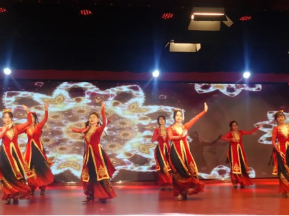 由汶扬歌、古丽期曼等带来的新疆舞《石榴花开》通过她们妙曼的舞姿向我们展示了浓厚的少数民族风情,寄托着民族大团结的美好愿望。