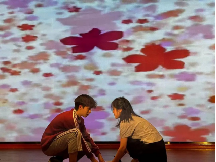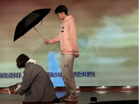 罗钰燃和孙馨玥带来的歌曲《Rewrite The Stars》婉转悠扬,寄托了积极向上的美好愿景,给每位在座的同学带去了不竭的动力。