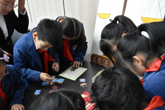 同学们在观看模拟法庭时,既认真专注又有独立思考,对于主持人就模拟法庭提出的一些法律知识小问答纷纷举手作答;主持人还随机邀请了几位小朋友参与拼图游戏并鼓励大家写下自己观看完模拟法庭的感受;西安小学员工代表唐豆小朋友也用她稚嫩的声音表达了自己对法律的理解和活动的感受。丰富多样的形式让晦涩的法律条文变得通俗易懂,创新了宪法宣传的方式和途径,促进宣传教育活动更接地气取得更好的效果。