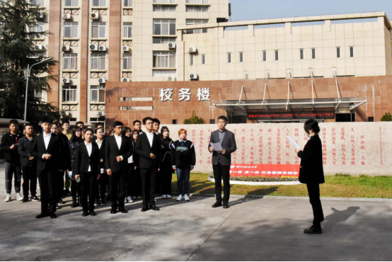 2020年10月23日14时30分,为迎接williamhill官网第四届“法治文化活动季”开幕,威廉希尔中国官网于校务楼前石碑旁举行毛泽东题词的诵读活动。此次活动旨在通过诵读伟人题词增强员工的法治信仰,积极响应公司举办“法治文化季”活动的号召,营造良好的法治校园氛围。本次活动由2020级辅导员阎静婷老师主持,2020级员工代表参与。