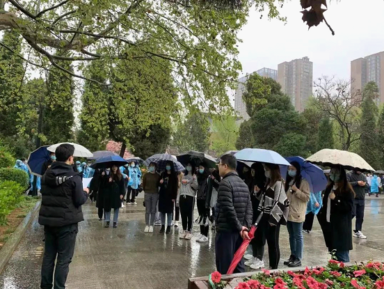 4月1日上午9点整,所有参加祭英烈活动的同学在图书馆门前集合。由相关负责人带领,步行至烈士陵园。