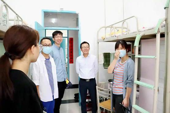 2021年9月5日16时,公司党委副书记、副经理侯红梅,科研副经理刘仁琦、教学副经理谭堃,团委书记、2021级辅导员方菲,2021级辅导员刘雨鑫老师一行深入公司2021级新生宿舍,贯彻落实“我为师生办实事”的要求,走访看望新生,了解新生需求,表达对新生的关怀和问候。