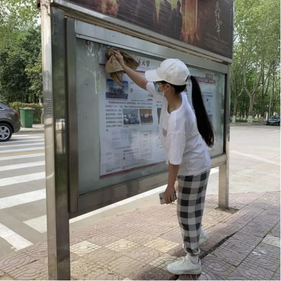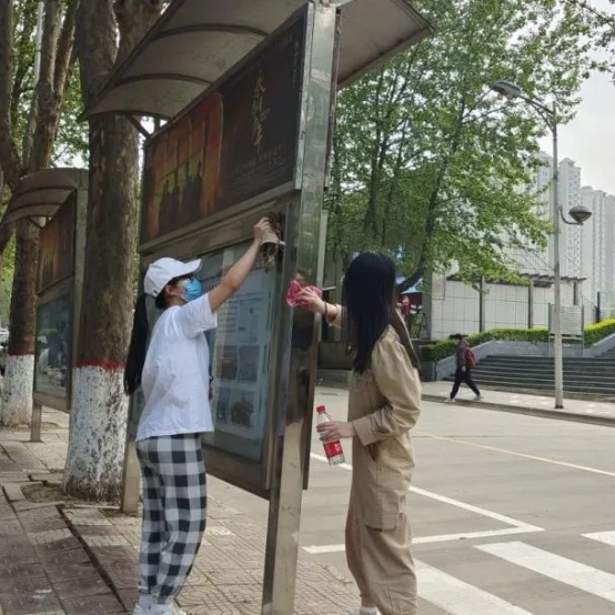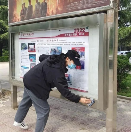 大家迅速行动起来,三三两两组队捡拾绿化带内的垃圾,有的清扫台阶和楼宇拐角的灰尘和杂物,有的认真擦拭道路两边的指示牌和宣传栏……同学们分工明确,井然有序,干的热火朝天,一滴滴汗水融入阳光,一双双手接互传递,劳动热情在彼此的心中升起。