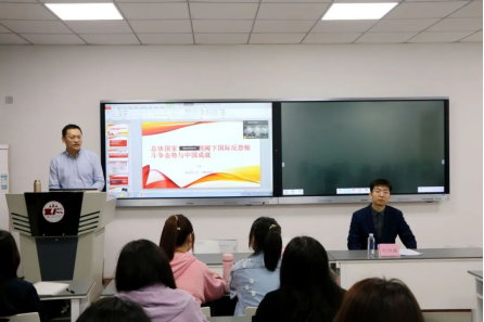 本次讲座由公司2021级辅导员刘雨鑫老师主持,因防疫政策要求,本次讲座以线下线上相结合的方式进行,不能到现场的同学可以通过腾讯会议进行学习。兰迪老师从“国家安全观与反恐斗争概述”和“中国的反恐与成就”两个方面入手开展宣讲,增进了我们对反恐斗争和国家安全的认识。