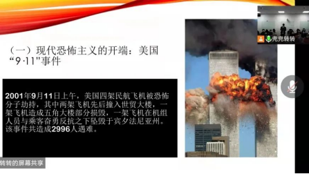 讲座伊始,兰迪老师首先简明介绍了国家安全观的内涵,并阐述了国家安全观和反恐斗争的关系。随后,他用现实案例向我们具体介绍了现代反恐的开端——美国“9•11”事件、法国的“查理周刊”事件、恐怖组织“伊斯兰国”的历史以及挪威的“布雷维克事件”。在对上述内容的评述中,兰迪老师启发我们思考了恐怖行为的发生原因以及其从组织行为到个人犯罪的转变历程,在思想的交流中向我们传达了维护国家安全的必要性和紧迫性。