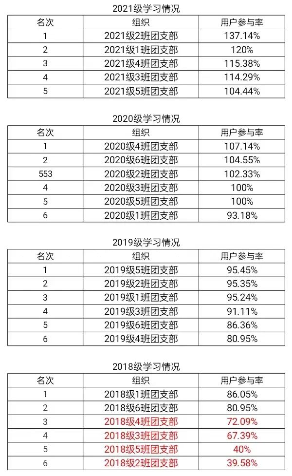 新一周的“青年大学习”开始了,希望第十三季第八期学习参与率较低的团支部可以重视起来,积极督促同学们进行“青年大学习”,期待下次各支部都能取得更好的成绩。希望新思想能浸润你我的心田。