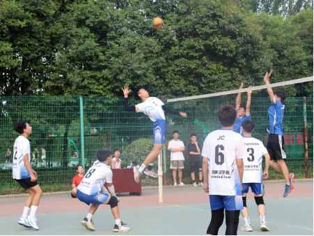 紧接着,公司男排与公安公司男排于长安校区4号场排球场展开了对决。随着一声清脆的哨音,比赛揭开序幕。竞技场上硝烟弥漫,双方都投入了激烈的对战中。