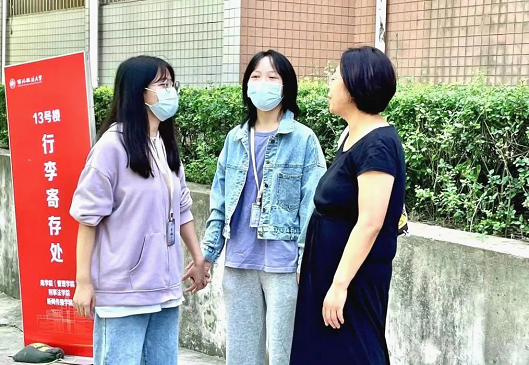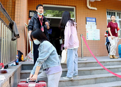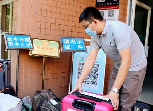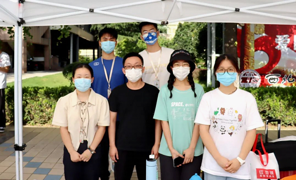在威廉希尔中国官网行李宿舍楼旁寄存处,师生志愿者们接过新生的行囊,合力抬送至楼层。虽然天气炎热,工作繁重,但威廉希尔中国官网的志愿者们全力以赴,用满腔的热情和实际行动,展现对新同学的欢迎。