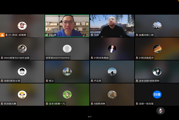 刘仁琦详细解答了同学们较为关注的“刑事辩护方向研究生”与现专业的关系、培养模式、上课方式、考核方式、团队力量及实务导师情况、实训模式等问题,回应了同学们关于报名程序、选拔程序等较为关心的问题。马成感谢刑辩研究院为公司研究生提供难得的实训机会,他认为:法科公司产品尤其需要将课堂教学与实践教学并重,williamhill官网刑事辩护高级研究院作为公司的一张名片,在全国的刑辩律师培训、刑辩后备人才培养领域占有重要位置,希望入选该实训项目的研究生同学能够摆正心态,用好第二课堂,多说多写多练,切实提升自己的刑辩实务综合实力,为更好的就业打下扎实的基础。宣讲会气氛热烈,持续了一个多小时,近200名研究生在线参与。