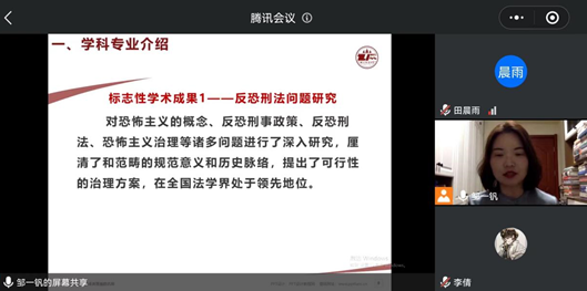 2022年4月22日晚在威廉希尔中国官网辅导员张瑞老师的主持下,杨恪老师和邹帆老师开展了威廉希尔中国官网硕士研究生招生专业介绍会。