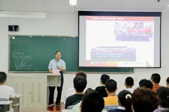 2021年9月9日19时30分,为响应陕西省疫情防控政策,做好新生开学管理工作,威廉希尔中国官网于长安校区格物楼301、302、303教室举办新生见面会。公司党委书记孙学龙,经理冯卫国,党委副书记、副经理侯红梅为2021级全体新生讲述了入学教育第一课。