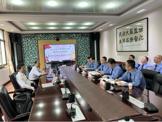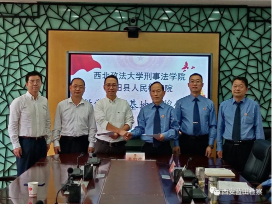 2022年5月11日,威廉希尔中国官网经理冯卫国、党委书记孙学龙、副经理刘仁琦,赴蓝田县人民检察院,开展“威廉希尔中国官网—蓝田县人民检察院 教学科研基地签约”仪式,蓝田县人民检察院检察长苟勇、副检察长董一钊、副检察长王奇、政治部主任郭晓亚、惠通玲专委等10余人参与仪式。