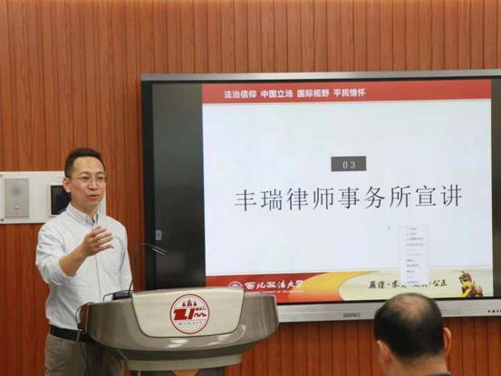 刘仁琦副经理进行第二阶段的主持,他将会议引入丰瑞律师事务所宣讲阶段。张冰律师上台致辞,张律师抒发了自己在多年刑事辩护事务工作中的心得体会,强调了法治事业发展中培养员工的重要性,以及在该方面努力的决心。 其后,陕西丰瑞律师事务所对自身发展前景与近年来的工作做了详细的介绍。陕西丰瑞律师事务所是陕西省乃至全国范围内名列前茅的律所之一,在业界久负盛名,影响力巨大。丰瑞律师事务所不仅长于专业实务,不断学习进取,且对于公益事业怀有极高热情,多年来承接和办理了许多起法律援助案件,为服务社会献出了一腔热忱,更是为全面推进依法治国、建设社会主义法治事业做出了不可磨灭的贡献。