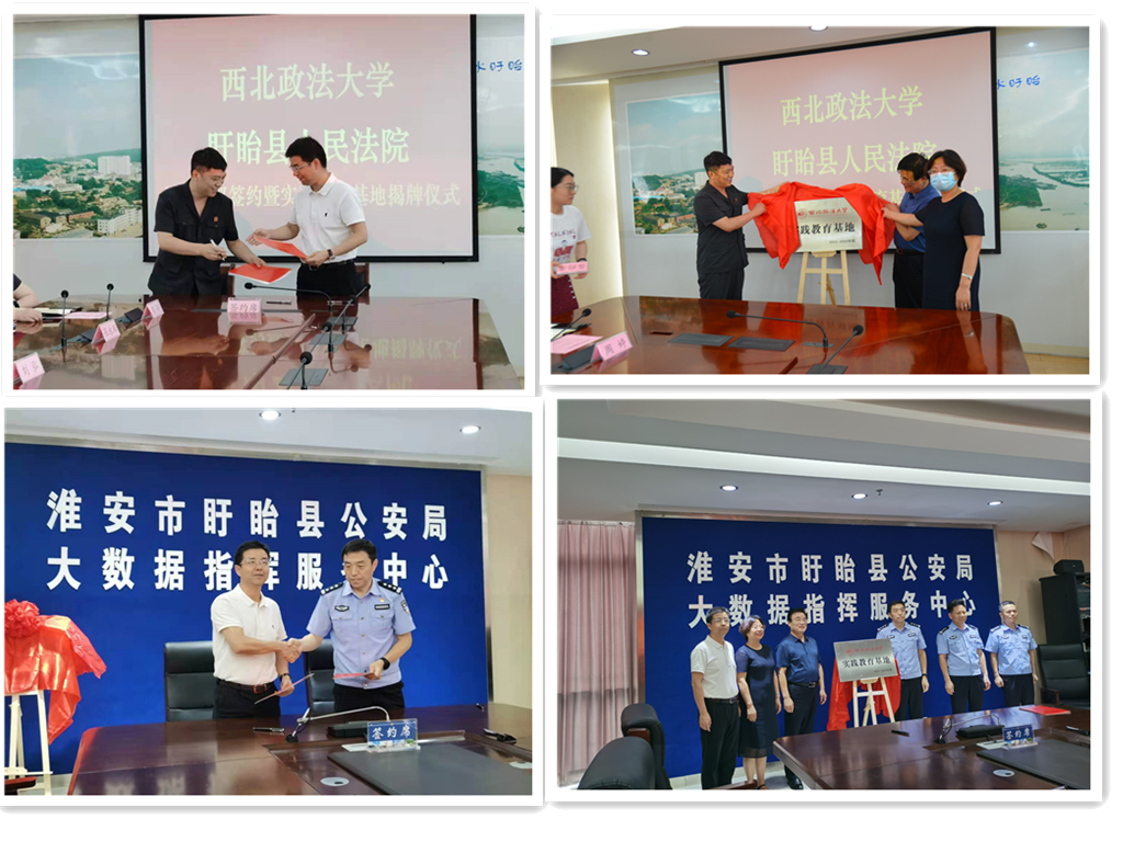 为充分发挥院校资源优势,实现高校与法院及公安系统在实践教学、人才培养、学术交流等方面的协同合作,公司党委书记孙学龙,党委副书记、副经理侯红梅,公司张国伟副教授及教务秘书杜丽萍一行四人赶赴江苏省淮安市及宿迁市,在7月19日、20日及21日,分别与淮安市盱眙县法院、盱眙县公安局和宿迁市泗洪县法院签订了共建协议书,并举办了实践教育基地揭牌仪式。出席签约仪式的还有各单位领导班子成员及部门负责人。公司张国伟副教授还分别为三个单位的同志做了一场精彩的学术报告。